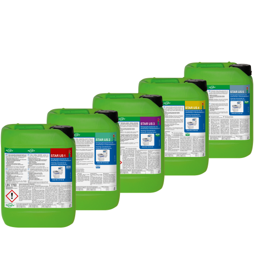 Die Bio-Circle STAR US Reiniger optimieren die Reinigungsleistung des Ultraschalls. Die ausgewählten Tenside und Wirkstoffe sind bei der starken Intensivreinigung (25 kHz) sowie der Feinreinigung (45 kHz) daueraktiv. Die Reiniger sind wässerig, VOC-frei bzw. VOC-reduziert, hochkonzentriert und demulgierend.